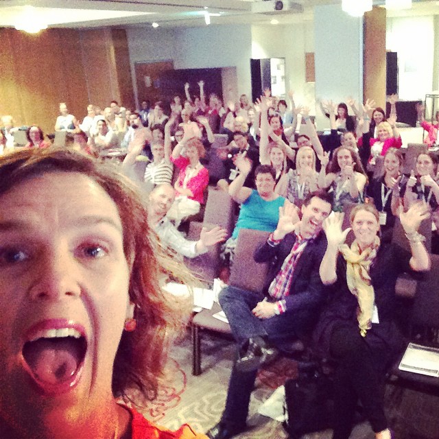 Angela took the stage at the end of the second day of OTAQLD14. She was bubbly, full of energy, and confident. It was very obvious that she was confident on stage talking in front of many people. She started her Keynote with a selfie lol.